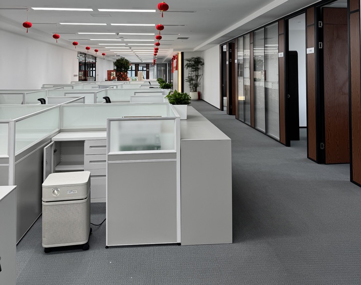 從上面圖片中可以看出,在多個辦公區(qū)域與辦公室中,都有安裝了奧司汀空氣凈化器,24小時持續(xù)運作,有效凈化裝修后的有害氣體和異味,提升了室內(nèi)空氣質(zhì)量,為員工創(chuàng)造了一個健康、舒適的工作環(huán)境。